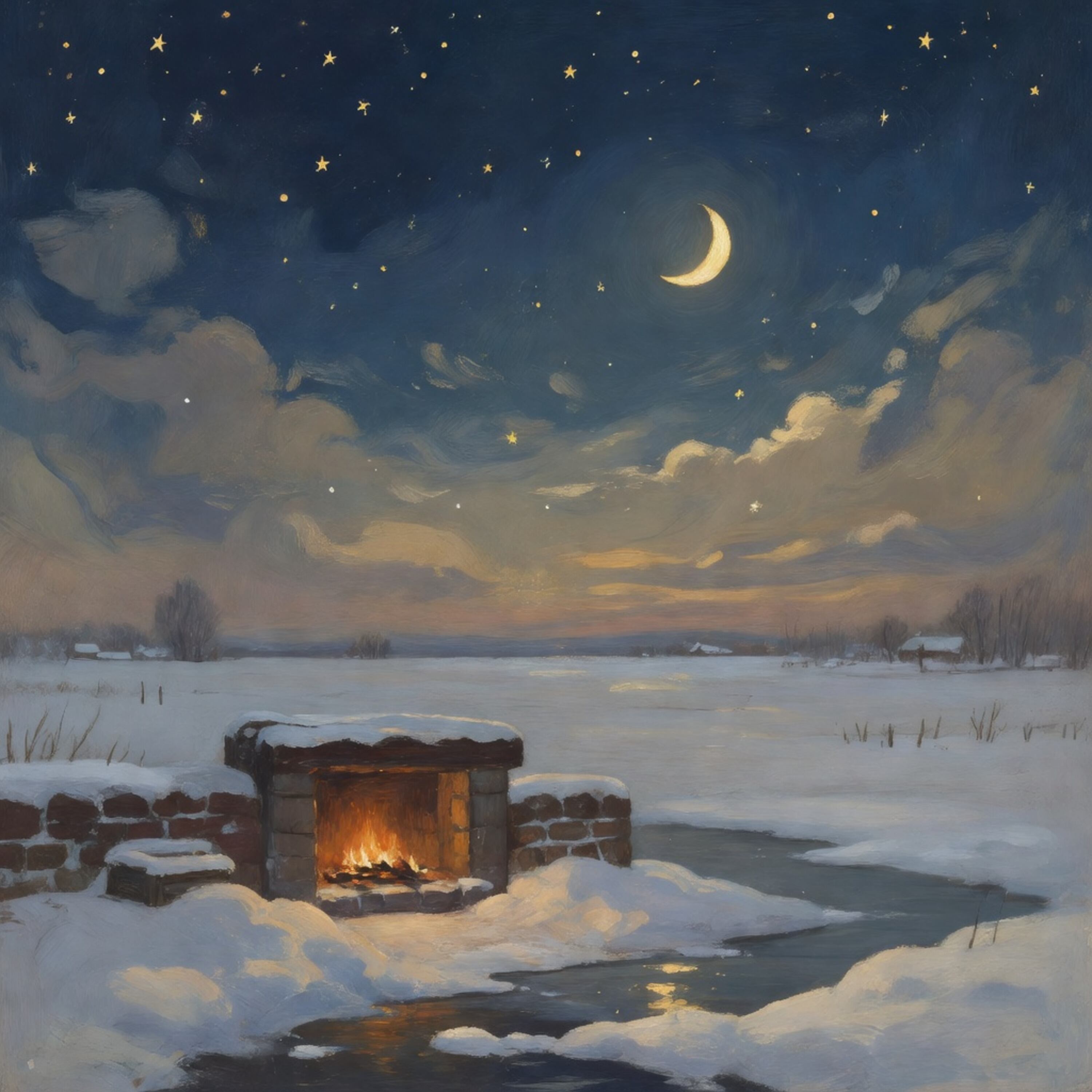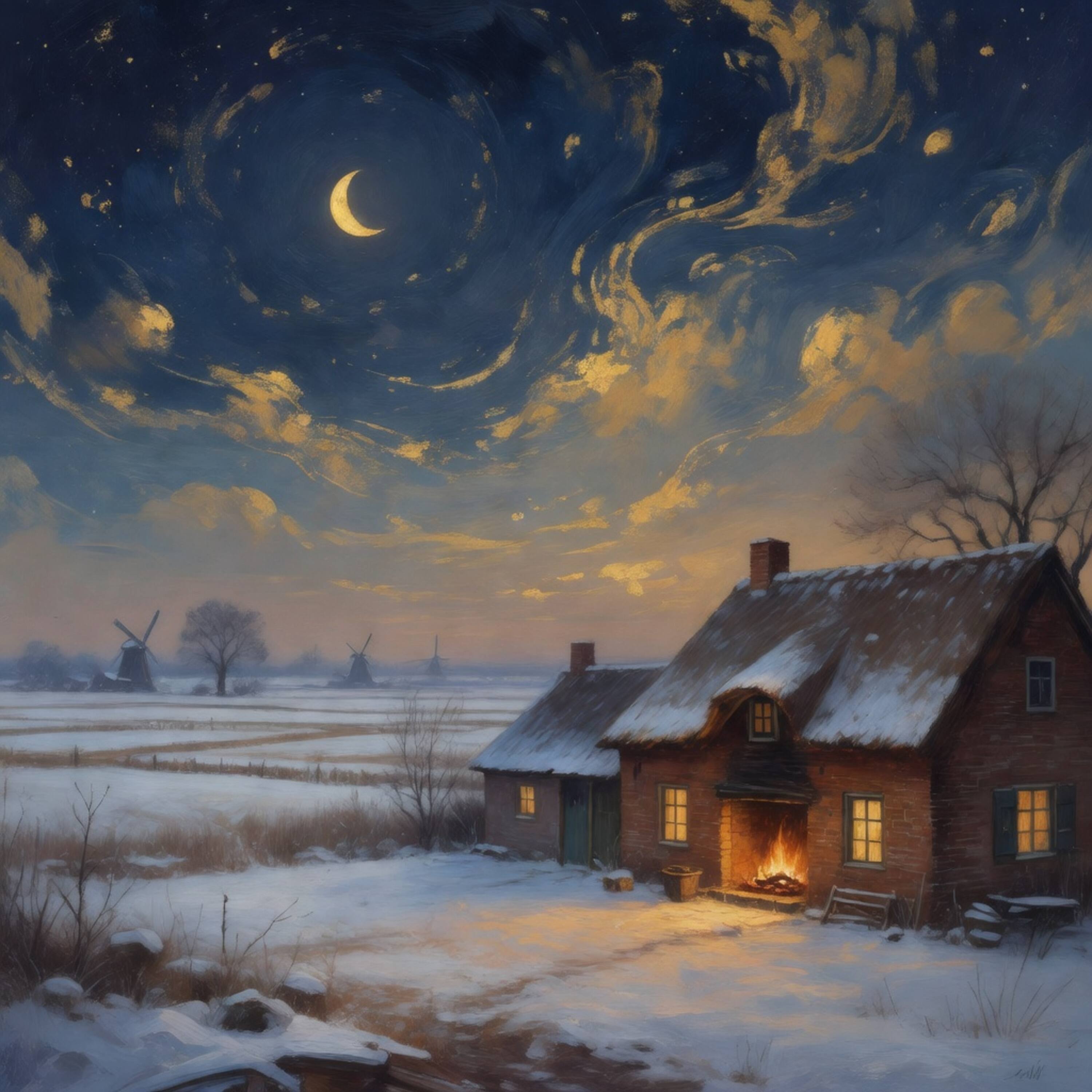 Een winteravond bij de open haard